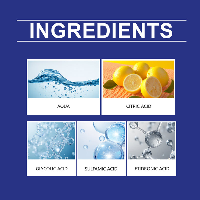 Belangrijkste ingrediënten: water, citroenzuur, amidosulfonzuur, glycolzuur, hydroxyethylideendifosfonzuur